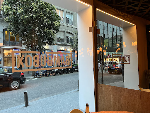 Read moreWe came for lunch to bambu box on a saturday in August. We love thai cuisine and were excited to try out a well reviewed thai respaurant in Madrid. They have a decent wine and beer selection, although the beer could have been colder. We started out with the brochetas de pollo(chicken skewers), and they were generously loaded with chicken and topped with a thai style satay sauce. For mains I went with the pad kee mao, and my dining companions ordered the pad thai. I had ordered the pad kee mao extra spicy, since they told me it was a european spice level, but even extra spicy it was pretty mild. The portion was very large and it came with lots of juicy chicken and fresh veggies. I didn’t try the pad thai, but my dining companions were also very satisfied with the quality and portion size. This place is priced a bit higher than other thai restaurants in Madrid, but I find the portion size, location and ambiance make up for the price. I tried to return for the lunch menu a week later, but unfortunately they don’t open for...