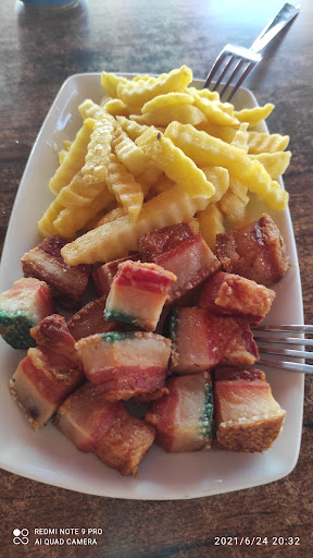 Read moreIndicar que no hay nada notable que destacar. Servicio normal tirando a anodino. Es la tercera vez que voy únicamente para tomar una cerveza en la terraza. Hay veces que ponen aperitivo y otras no, pero si se lo dices al camarero te trae unas patatas fritas o unas aceitunas. En ésta tercera vez nos hemos aventurado a pedir media ración de torreznos con patatas, según se puede ver en la foto. La corteza estaba con la tinta del sello. Diría que poco sano. También quiero destacar, preguntar antes por el precio de raciones, ya que en la carta pegada que hay en la puerta consta un importe y luego el camarero te dice que está mal y quiere cobrar otro. OJO con eso. Sin duda alguna puede que vuelva a tomar una caña rápida en la terraza , porque está al lado del metro...y veré según, si modifico mi opinión. Espero sea de...