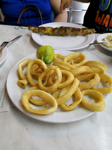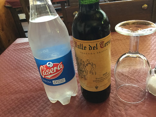 Menú del día, 10 euretes. De primero, arroz a la cubana. Receta: arroz blanco y tomate directo del bote. Me ofrecieron dos huevos fritos. De Segundo, oreja, cortada muy finita y un plato enorme, lastima que fueran con el mismo tomate del primer plato. Sabor lineal y cocinado con poco cariño y gusto. Solo consigo llenar la panza y sentirme pesadísimo después de la comida. Para decir algo positivo, el local tiene un cierto aire castellano, con cebollas, ajos y limones de mentirijilla, colgados del techo. El postre, lo mismo, fresas con chantillí sin sabor. Por último, el camarero, producto español, trabaja rápido y con alegria, atento de todo. No se acepta el lago con...