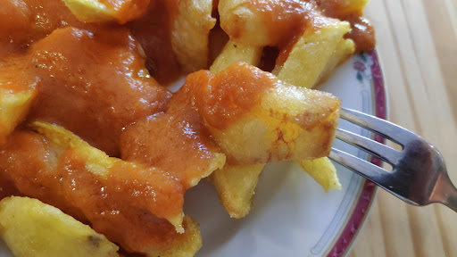 bravas , perfectas , en tacos grandes como debe de ser , crujientes por fuera ,como debe de ser ,y la salsa perfecta. 👌🏻