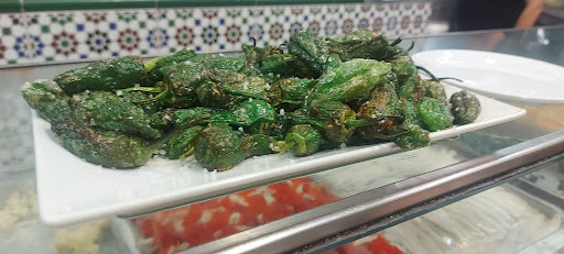 pimientos de padrón, igualmente, perfectos . Calientes ,recién hechos, con su sal gorda .