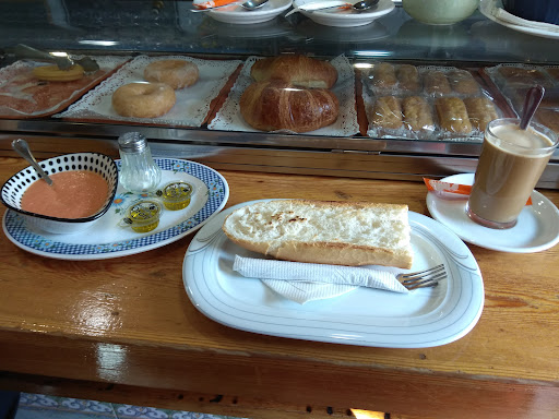 Read moreI’m sitting here on a Saturday morning. It’s a small and old cafe-bar, in front of the church with outdoor sitting. They run out of churros but they made me fresh toasted bread with tomato. The waiter looks serious, not joking around, quite...
