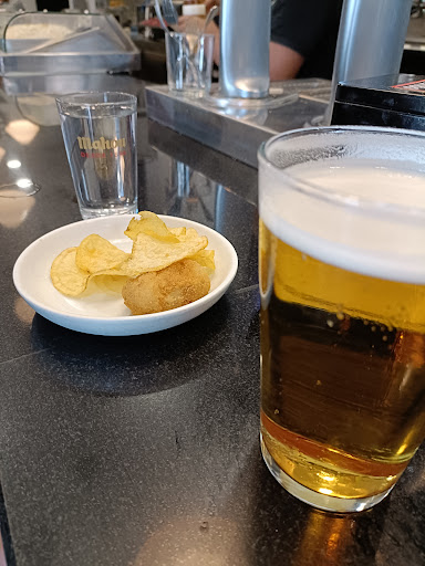 Nice place to stop for a beer before going to an exposition at the nearby Madrid Matadero. Very friendly service and a good range of typical Spanish raciones. Picture is of the complementary tapa, there was more on the plate but my daughter grabbed and ate a croquette before I took the photo. The place is also very clean and the beer served at the perfect...