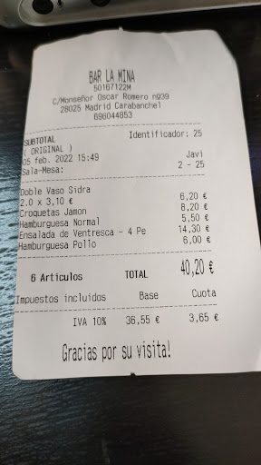 Read moreEstuvimos ayer comiendo por allí, la carta QR no está actualizada, tienen un cartel en la puerta que te indica que los precios han subido debido a la subida de luz. Pedimos hamburguesas, una de pollo y otra de ternera, yo preferiría pagar un euro más por cada una y no haber pagado por una ensalada de tomate y ventresca tan poco elaborada por 14,30€ Es lo que me ha parecido más caro para lo que han servido. Las croquetas estaban espectaculares. Te ponen tapita con la bebida, en este caso cerveza doble en vaso de sidra. El sitio está...