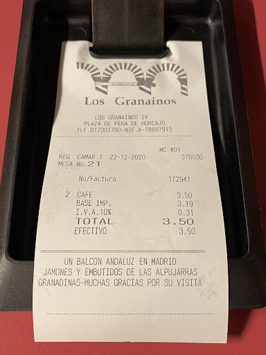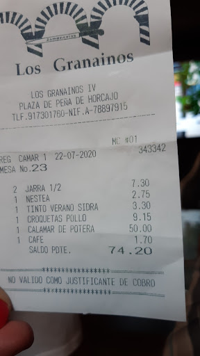 Read moreEstuvimos cenando hace una semana en la terraza y quedamos encantados, tanto por lo rico que estaba todo, siendo una cena informal, de raciones, etc... como por el trato del personal y la seguridad que ofrecen en las medidas de higiene y cuidado por el tema del dichoso coronavirus. Restaurantes de teóricamente un nivel mucho más alto, no cuidan de sus clientes ni la mitad que Los Granainos de la Plaza de Peña Horcajo. Distancia entre mesas, limpieza de las mismas con producto y papel desechable, carta con código QR para ver con nuestro mv, cubiertos, platos y servilletas individuales precintados en un bolsa de plástico, todo el personal con mascarilla perfectamente colocada y no en la barbilla ( parece una obviedad pero no es siempre así por desgracia ) Y sobre todo, un trato inmejorable por parte de las personas que nos atendieron, profesionales, cuidadosas, simpáticas y naturales. Tomamos ensaladilla rusa, calamares fritos, tostas de anchoas, mollejas, todo súper bueno y sobre todo, estuvimos agustísimo y nos sentimos seguros y atendidos con todo el cariño que ponen en su trabajo para que pases un rato...
