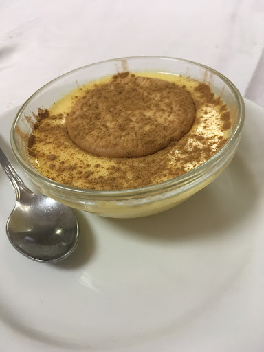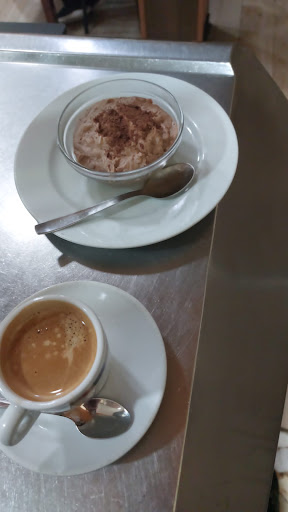 Mousse: La mousse luce ligera y cremosa, con una presentación simple pero eficaz. Está espolvoreada con cacao o chocolate en polvo, lo que añade un toque visual que también anticipa una explosión de sabor al primer bocado. La textura parece aireada y bien batida, como debe ser una buena mousse, con una base probablemente de chocolate que equilibra entre dulzura y amargor. Al ser servida junto al café, ambos pueden complementarse perfectamente: la amargura del espresso contrasta con la suavidad y dulzura de la mousse, creando un equilibrio interesante en el paladar.