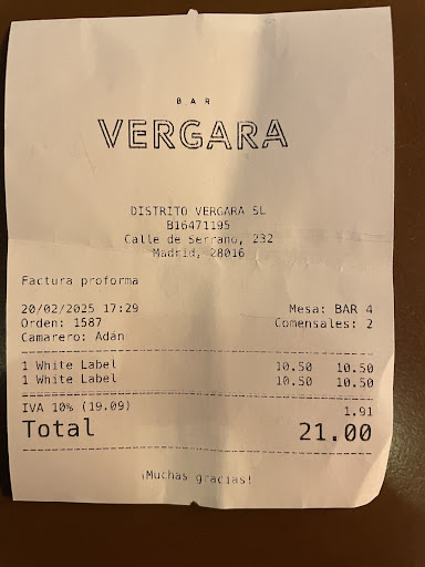 Read moreEs la segunda vez que vamos. Los precios están fuera de mercado por lo que ofrecen a cambio. El primer día, pensamos que, cómo era novedad, no se aclaraban: 4,50€ por cada caña, 18,00€ por una copa de Macallan. Muchos empleados, casi más que clientes; una “barista” manejando la coctelera; el vocabulario entre los empleados, una ordinariez tras otra. En fin, una “joya de sitio”. Qué pena… Recordar ese local cuando fue, 18 años ADMIRALS y, después, 20 años AIRPORT, da pena ver en lo que ha quedado. Maravilla de sitio. Por ver si fue un error, he vuelto hoy, a las 17:20, con uno de los dueños de ADMIRALS. Entramos, no había nadie, local vacío; un empleado simpático, nos pregunta que dónde vamos… HAJAJA… Dónde vamos a ir? A la barra. Vaya tela. Al fin, pedimos dos güisquis CUTTY SARK. Resulta que no hay; un local de ese “nivel” y tienen las marcas justitas (por qué será 😜) Nos decidimos por dos DEWARS WHITE LABEL. La forma de servir es de “gran profesionalidad”: traen un vaso bajo lleno de hielo (no sirven el güisqui y luego ponen el hielo) y te ponen un dedo (en horizontal) de bebida. Preguntas y, educadamente, te dicen que es la medida 😳😂😂😂. Bueno pues hasta ahí vale. Lo mejor es cuando, amablemente, pides la cuenta. No hacen falta comentarios, adjunto foto del tique; según ellos,...