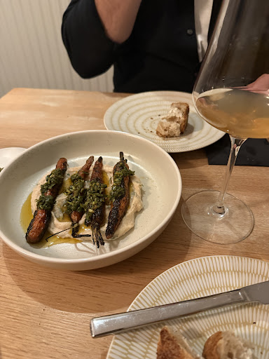 And the food? Amazing. We shared a bunch of dishes and each one had that feeling of real cooking behind it. The standout for me was the beef (I think it was cheek?) over this insanely creamy mashed potato — rich, flavorful, comforting, and just perfect with a glass of red wine. Another friend had the fish, which came on the same mash with a bunch of roasted cherry tomatoes on top. Light and fresh but still packed with flavor.