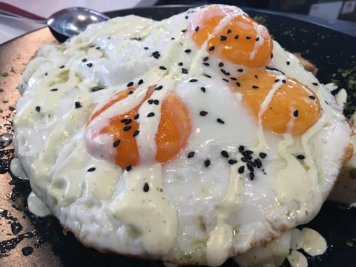 Papas con sepiai, que le plantan huevos sobre el plato y que no dicen en la carta. El resultado es un sin saber qué estás comiendo. Trozos tarugones de sepia y de mala calidad, mal cocinado y plato...