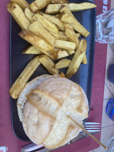 He de decir que nos chocó la cantidad, te ponen una buena cantidad , las hamburguesas son grandes ,como también la guarnición de patatas.