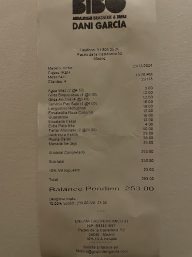 To be frank, if you would like to have a nice dinner in Madrid, avoid that place, save your night and money for something nicer.