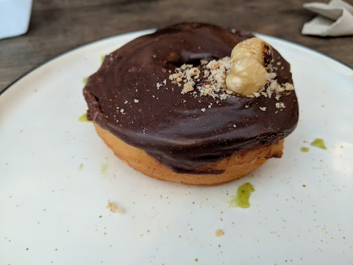 I have been aware of this place for ages but never managed to call in. Today I did and I’m annoyed and delighted. Delighted that I called in and annoyed that I waited. The place looks nice and is welcoming and comfortable even during a plague. The chap running front of house ( Joel) was a sparkly eyed dreamboat and treated me and my girlfriend like heroes returning from a war. The coffee was delicious and the cups were cute. My partner had the pumpkin spice donut because she is young and American. I had the classic vanilla glaze because I am an unimaginative Brit. Both were brilliant. There are other nice vegan donuts knocking around Madrid but these were nicer. Joel gave us some absolutely gorgeous freebies too because we were new. I will become an absolute regular here and would have without the freebies. To get new regular customers during the apocalypse you have to be superb. This crew are that. Bagels, donuts, coffee, dreamboats. If you’re not into anything from that list there is a nearby river you can jump in to. Highly...