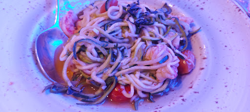 En cuanto a la comida y servicio, no repetiremos. Todo soso, extremadamente soso sin grano de sal. Te ofrecen visualizar la carta en una tablet (No puedes pedirlo directamente en ella) Pedimos todo del tirón para ahorrar el paseo al camarero, pidiendo una cerveza Stella Artois y Hoegaarden (indicaba que se servía en vaso con naranja para darle un toque cítrico, pues me entregaron directamente el botellín lejos de la presentación… Empezábamos mal) y de comida Fake Croquetas, Gambas con salsa Kimchi, Chicken Tikka Masala y Picanha. Llegaron Tres platos de comida a los 5 min de la bebida, pero, a pesar de la rapidez donde apenas le habíamos dado un sorbo a la cerveza, el orden no fue el adecuado… Primero el Pollo Tikka Masala, servido con arroz, sin cuchara ni nada para servirlo a pesar de la salsa que no te puedes echar con el tenedor… El sabor del pollo sin más, mejorable. El arroz, más que soso… Después llegaron las gambas donde pasaba lo mismo con el arroz soso y ni cuchara. Y por último las croquetas… Creo que esto debería haber sido lo primero. La Picanha “que no falla” titulada por ellos, de ser caracterizada por muy tierna, extremadamente dura y también sin sal, la verdura que lo acompañaba y patatas igual. Además, la carne se hizo de rogar casi media hora, nos quedamos sin bebida y hasta que nos sirvieron nueva ronda donde cambiamos a un tinto y agua… Desbordados no estaban para justificarlo, os lo puedo asegurar. Tenían muchos camareros, pero también decir que el detalle del código de vestimenta que no existía para un sitio que intentaba ser top… La encargada que nos recibió vestía con un top sin sujetador marcando todo, hasta ahí puedo entender que quisiese llamar la atención y aún así no nos pareció del todo correcto… Pero el resto de camareros, cada uno llevaba una camiseta/polo/top con el nombre del local en pequeñito o sin ello, colores diversos que de espaldas no les reconoces, y los pantalones… muy apretados, rotos, pesqueros, shorts… Una diversidad que de verdad costaba reconocer si eran camareros. Algunos entre ellos se tenían que ayudar porque no eran capaces de llevar una sola bandeja con 4 cervezas… Detalles que marcan la diferencia. El baño era mixto, con lavabo en el medio para todos, pero cuidado con el último del lado derecho, la puerta estaba atascada para cerrar y me quedé encerrada durante 10 min hasta que el pestillo decidió salir… El DJ no empezaba hasta pasadas las 23:30h que nos marchábamos. En fin, muchas cosas a mejorar. Nosotros no volveremos ni lo recomendamos. El sitio es un quiero y no puedo, el local parece más de disco que de cena y aún así tampoco han sabido fusionarlo en...