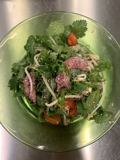Hear this: 🚨the strip club is the best salad in Madrid, right now🚨 I almost don’t want to gush that much about it, for fear that so many people will go that getting my hands on this salad becomes difficult. Rare strips of beef mixed with spring onion, cilantro, mint, raw green beans, bean sprouts, and red onion. Perfection. And although it’s not tear-inducing, like the traditional Thai version of this salad, it’s still pretty spicy for Spain. Some Spanish customers sat near us ordered the same and said, “Que pica eh?” 🌶️