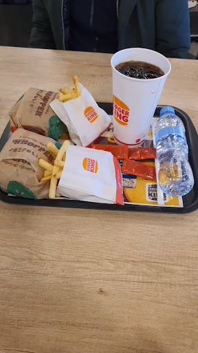 Estafa en toda regla. No tienen los mismos productos que en otros restaurantes. Te obligan si o si a coger menús de Hamburguesas grandes y encima gigante. Ojo si quieres cerveza, la cerveza te la cobran como gigante y te Dan una pequeña, y si te quejas te dicen que ellos no tienen la culpa. Happy meal no tienen, tienen algo similar más caro y encima si lo quieres tienes q esperar una cola de una hora porque en el quiosco no puedes cogerlo. La lentitud y la falta de personal, hace q existan colas interminables. Burguer king cada vez va a peor, cada vez quieren ganar más entregando menos, como con las alitas, quitar una alita y cobrar lo mismo eso es avaricia. En definitiva, si vas al Ifema Burguer king no es una...