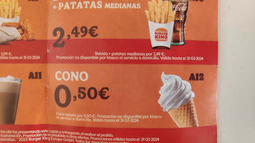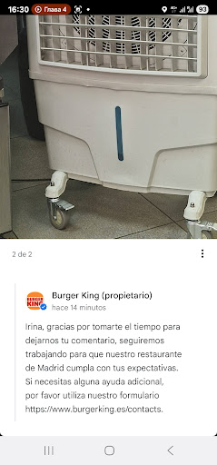 Read moreEn primer lugar, si eres minusválido o dispones de algo que te impida subir escaleras olvídate porque este no es tu establecimiento, fuimos a coger una sillas debido a que mi amigo dispone de una enfermedad por lo cual lleva una silla con un peso de 120kg, fuimos a coger una silla y una chica morena de piel morena, responde lo siguiente, donde vas con las sillas de manera borde y antipática, encima que no hay sitio para comer hemos tenido que comer al lado de las bebidas la chica malísima, es lo peor que nos ha podido tocar, le agradeces que te de una pajita y ni responde, respeto 0, igual que digo las cosas malas, las buenas también, salió un compañero suyo y me preguntó amablemente qué ocurre y porque cogí las sillas a lo que me respondió, si quieres podemos intentar subirla, le dije que no se podía debido al peso y a los 30 escalones que hay y dijo sin problema y me ayudó a bajar una silla, no recomiendo este burguer King para gente con algún tipo de discapacidad, y la chica esperemos que cambie porque con esos modales y ese respeto no llega a nada, después la chica que nos atendió, majisima, súper buena chica y atenta por ella 10/10 pero por su...
