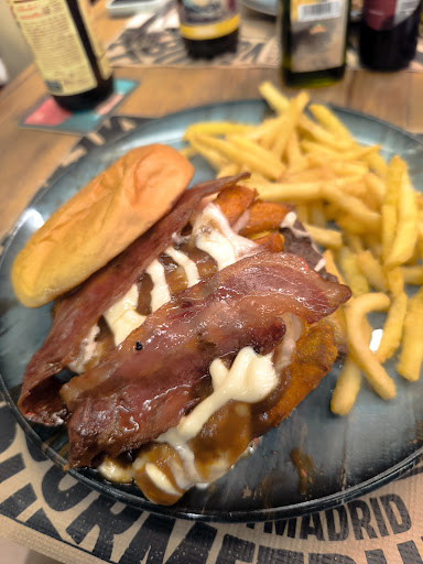 Read moreIntento reservarme los malos comentarios y hacer una crítica constructiva... Me habían recomendado este restaurante por sus nachos, tienen esa capa de queso que los hace irresistibles pero lo cierto es que añadiendo carne se elevan desproporcionadamente de precio, no dejan de ser totopos de bolsa. Quisimos probar también una de las hamburguesas pero cambié el pan al de sin gluten y es una decepción cuando vas a gastarte el dinero en algo rico y te encuentras con esta calidad tan pésima. A día de hoy hacen cosas sin gluten buenas en muchos restaurantes de Madrid, no entiendo la necesidad de tener en un restaurante de hamburguesas un pan que parece sacado de una estantería del pakistaní de la esquina el cual lleva unos días ahí secándose. La carne también era poco apetecible, pedimos al punto y la hicieron de menos, además de estar como a cachos molidos y otros no. El sabor de la trufa apenas se notaba y cuando tienes una carne madurada quieres que el resto de sabores hagan algo de presencia. La cebolla frita sobra porque no se nota en sabor ni en textura y por último el "crispy bacon"... El camarero me vio con cara rara y me vino a preguntar, el bacon estaba duro nivel caramelo que se queda pegado en los dientes. Quiero decir, no era crujiente, estaba también reseco. Fue a la cocina para traer uno recién hecho y delante de él lo vimos la diferencia y no supo que decirme más que era así. Bastante pésimo no dar solución a un problema.