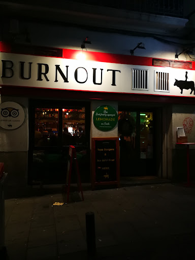 Mi visita de nuevo a Burnout se debe a que no había acudido desde hace bastante, tenía ganas y quería que quedara plasmada en Cenando con Pablo para su consulta. Hay dos locales, al que acudí en la Calle Valverde (Al lado de Gran Vía) y otro en Calle Fuencarral, entre Quevedo y Bilbao. Os cuento mi opinión de los Nachos y la Burger. No pedí más cosas porque la carta no ha cambiado en nada respecto a hace un año, creo que va siendo hora: