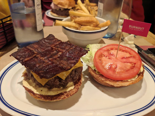 Reseña Final ¿Si me preguntan por mi Hamburguesa favorita? La Burnout Smoking de Burnout, doble, con el punto de carme correcto y Pan como debe ser. Un manjar. ¿Hamburguesería favorita? Burnout desde luego que no. Solo me llama la atención 1 Burger de la carta (Y aviso, he probado las demás en otras visitas) y los postres son bastante flojos. Falta alguno estrella como Cheesecake, Cookies o cosas originales. En general, creo que la carta necesita un lavado de cara, porque es la misma de hace 1 año y se nota el paso del tiempo y la suciedad cuando la tienes en tus manos. Volveré a probar esta hamburguesa porque me encanta, espero que solucionen el asunto del pan tal como me han comentado por Instagram. Coloco en Selección "Imprescindibles" por su exquisita carne.