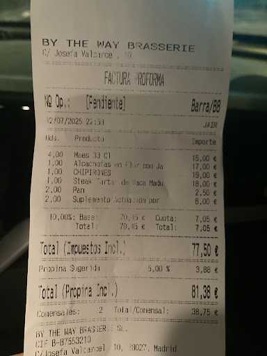 Read moreTenía muchas ganas de ir a este local para tomar una cerve. Son de estos sitios que ves con el rabillo del ojo cuando pasas con el coche y nunca encuentras el momento para ir. Aprovechando que Lorenzo dejó de apretar tanto y corría un poco de aire fresco, se quedó una tarde genial para ir a disfrutar de la terraza de By The Way. En pleno agosto, sin colas y sin reserva, encontramos mesa en la terraza sin problema. Pedimos un par de cerves y vimos pasar al camarero con un plato de mejillones que nos abrió el apetito. Así que no lo pensamos y pedimos todo saludable, mejillones dry martini y hummus de calabaza. Hay que decir que la carta, es bastante completa, no es nada aburrida y ofrece muchos platos de diferentes estilos de cocina, sin olvidar los clásicos como la ensaladilla o hamburguesas que por cierto tenían muy buena pinta cuando las vimos pasar. En un plato nunca he visto tal cantidad de mejillones como nos trajeron, con un sabor excelente del toque de el Dry Martíni. Brutales! Recompensará el dinero que gasteis con creces! Muy muy recomendable. Cuando trajeron el hummus con crudities, nos llevamos una gran sorpresa, porque siempre tienes en mente la foto de unos bastoncillos de zanahoria y otros de apio, normalmente cortados al milímetro y normalmente insuficientes para terminar el humus. Lo que nos trajeron fueron cuatro zanahorias limpias y cuatro tallos de apio, para poder degustar un humus de calabaza y sésamo espectacular. Aunque pudiera parecer basto, creo que consigue el efecto contrario porque se disfruta mucho compartiendo este humus.