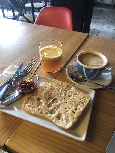 Fui a desayunar el sábado en la mañana, entro y me siento, y la camarera me grita desde la barra que qué me pone. No sólo no me ha dicho ni buenos días sino que tampoco me ha dado la carta, no me ha atendido como debe ser, no se ha enterado que al cliente se le saluda y se le da la carta amablemente? No sé si la responsabilidad es de ella o del dueño que no sabe dirigir y establecer cómo se debe atender en su negocio. Luego, la carta más rara que he visto en mi vida, quien la hizo nunca fue a una cafetería, muy mal explicada y sin sentido. Pido amablemente que me explique cuáles son esas tostadas del desayuno, ya que la carta no específica de qué son, sólo dice "tostadas", el cliente está obligado a preguntar para decidir... La camarera aparentemente sorprendida con mi pregunta me dice con cara de enojada y tono sarcástico "pues eso... Con tomate y eso..." Quiero saber todas las opciones, y que me las digan amablemente, no "tomate y eso..." porque voy a pagar, no es un favor. Ante la confusión y sin ganas de seguir preguntando, pido tostada con Tómate y aguacate, me contesta "ok" y al final me cobran el doble porque el aguacate no estaba incluido en el desayuno, cosa que tampoco me comentó al momento. Considero que la educación en atención al cliente se puede lograr si desde arriba lo enseñan y fomentan, aún y cuando los camareros no tengan ganas de atender bien por convicción o conciencia... así como atiende actualmente está camarera, no debería estar de cara y trato al público. Obviamente no volveré ya que en Madrid hay bastantes cafeterías como para ir donde no supervisan el trato de los camareros ni establecen códigos de trato al cliente con elegancia educación...
