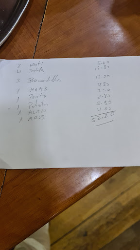 Read moreUn lugar de bocadillos y frituras a un precio muy superior al de la calidad que ofrece. Pedimos bonito con pimientos y nos trajo bonito con tomate natural. Al preguntar las razones, me dice que se había quedado sin pimientos y sin preguntar decidió cambiar lo que habíamos pedido. También pedimos patatas bravas y nos trajo una pequeña racción de patatas fritas y un poquito de ketchup (¿Eso son patatas bravas?). No ofrece ticket y solo te muestra un papel a bolígrafo. Cobra 0,60 € por poner en la mesa a unos tres metros de la barra cada producto.