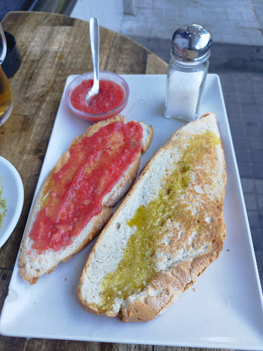 Hemos consumido en terraza, y entiendo que pueda costar algo más, también entiendo un suplemento por ponerte tomate a un bocadillo, pase, pero un te a 1.80 por estar en terraza nos parece algo excesivo para el barrio en que se encuentra, de la misma manera un bocadillo que cuesta de media 3,50 y fuera 6€