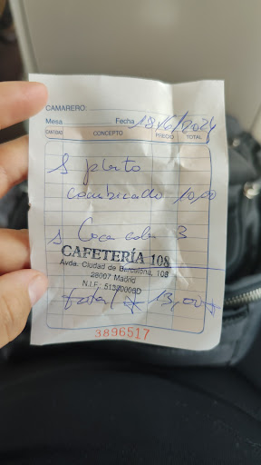 Read morePara mi Cafetería El 108....Es un Bar Restaurante Muy Bueno...Sus Propietarios Fernando y Laura Son personas Agradables. Españoles de Tradición...Su Tortilla Española es unas de las Mejores en Madrid...Siempre la Cerveza muy fría tienen Menú Diario..Precios Razonable ... Fernando un buen Cheff de Cocina Española...Y Aquí en el Barrio las personas está muy Contentas con su Bar y la personalidad de Fernando qué de verdad un buen Vecino...Se los Recomiendo un...