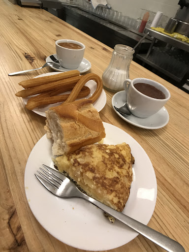 Read moreI love how everything here is so simple. You order what you want (you can see most of the things on the bar), enjoy the meal, if you speak Spanish you can chat with the cute granny, Mar, pay and leave. Orange juice is fresh, you can see the granny squeeze the juice from fresh oranges, coffee is ok (I like the milk coffee), tortillas are exquisite, churros are really good too. Churros are as good as Ginés, however the hot chocolate is better at Ginés (but also more expensive). You can ask the granny for some milk to add into the hot chocolate if you think it is too thick/heavy and turn it into a milk chocolate! Fees are not high! I truly recommend this place for...