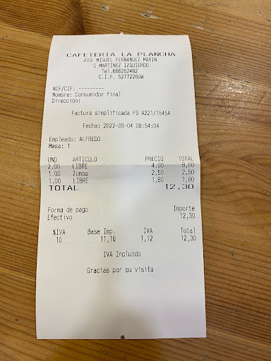 Read moreWe arrive during when the chef’s was done with the kitchen so the menu was limited. We tried the sandwich club which had chicken, tomato, lettuce and mayo adorned with potato crisps as well as the sandwich especial club which was beef strips. The food was ok since we couldn’t order any raciones. We also requested an order of chips but the chef was a bit reluctant on cooking it but proceeded none the less for a staggering price of €6...yikes! Overall the food was tasty but prices were a bit high for this cafeteria. I would recommend if you’re in a hurry and are near the...
