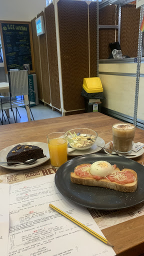 Read moreOjalá me dejaran empadronarme en esta cafetería! Vine a por un brunch, hace meses que no venía y me sorprendieron para bien (cosa no habitual en los tiempos que corren). Comienzan por darte a elegir tipo de café, zumo, tosta y postre. Te sientas en sus mesas amplias y te traen el zumo y una deliciosa granola con yogurt, frutos secos y fruta fresca. Luego llega el café de verdad verdadera y la tosta; elegí aguacate y me ofrecieron coronarlo con un huevo poché, que se derramó con parsimonia en la tosta al cortarlo. El postre, otro gran descubriemiento, éramos dos y pedimos para compartir: bizcocho de plátano y canela, sabroso por dentro y crujiente por fuera. Y tarta de queso , con la consistencia justa. Pero lo mejor de todo fue la atención amable de Juan y su compañera, amables, dedicados y pendientes de los detalles y de nuestra comodidad. Sin duda volveremos y traeremos amigos y familia. Pocos sitios tan bonitos, cómodos,...