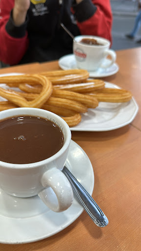 Read moreExcelente chocolate con churros he retornado a la infancia… hacía tiempo no tomaba algo tan delicioso. Fui atendido por una chica latinoamericana y he de decir que me dio un servicio espectacular. También comentar que el camarero con barba también de origen colombiano dejó mucho que desear de su servicio, me ignoró completamente cuando entre y créanme que me miró y cuando me senté me ignoró nuevamente, hasta el punto que sirvió a la mesa que estaba cerca de la esquina de la cristalera y para ello tuvo que pasar por delante de mi, cuando quiso hacerme algo de caso me pregunto desde otra mesa que quería sin acercarse un poco como mínimo de cortesía. El encargado muy educado atendió una pregunta y supieron lidiar con el carácter mío del momento que era para evaluar la eficiencia de ellos ante cualquier situación. No doy 5 estrellas por culpa de ese camarero pero la verdad son...