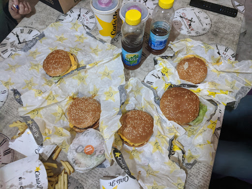 Went here for dinner after having a bad experience the first time I stopped in this location. Waited over 25 minutes for a simple hamburger and it’s fries. I watched only three other orders be delivered during that time. It became obvious when the employees were coming out of the back to watch the football game on the television that they were in no hurry to serve the customers. I had to ask again for the drinks when the food finally arrived and then to top it off I didn’t realize until I left and got home that I had paid for and ordered dessert and it never came out. Food was obviously slapped together and tasted nothing like the Carls Jr’s back home. Will never return to...