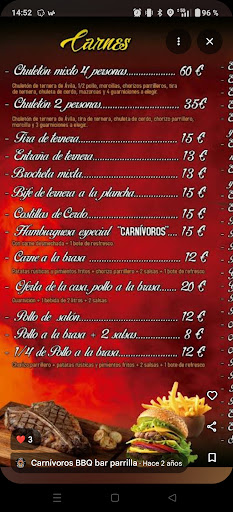 Read moreel local estaba vacío, por algo es, ya que te vas a la parrilla de usera al lado, y está hasta arriba siempre... Un chuletón, y un filete tiene bastante diferencia, he comido filetes de ternera más gordos, pedí una parrilla con chuletón de 40€ que aquí la tenéis puesta en 35€, aún así me trajeron un chuletón que parecía un filete de ternera, adjunto una foto de un chuletón comprado en Alcampo mismamente, y lo que me pusisteis, la carne durísima, hablé con una mujer y no me dio opción, me hablo diciéndome que eso estaba al punto cuando estaba tieso como una zapatilla el grosor del "chuletón" era de 1cm en su parte más gorda tal vez 2 y da gracias, estaba echo y al chico le dije crudo por dentro, eso para mí es al punto, trabajo en hostelería y se perfectamente puntos de cocción y tamaños de la carne, un chuletón no es de 1 ni 2 cm.... No volveré en mi vida, seguiré llenado a la parrilla de usera que está al lado en la vía principal, la atención 10 veces mejor si el cliente no está conforme no discutas, busca soluciones, no es posible que lo único que vale realmente dinero de una parrilla, lo dejen entero... Preguntate que pasa que algo...