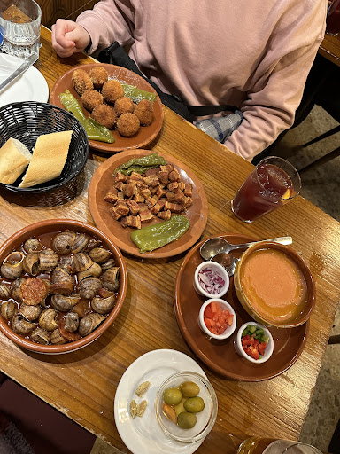Ā Ā Ā Read moreCame here with a friend after also seeing this on YouTube and honestly wondering what everyone else experienced, as we did not seem to get that. Iām not sure if it was because the owner was not there at the time, but the quality of the food was not what we expected it to be. It almost seemed like they did not clean the snails or something, as each one I ate had a little bit of grit and even the broth seemed like it had dirt or something in it, there was definitely something that I feel like was messing up the taste. Iām not sure if we were just there on an off night, as I find it hard to believe that we had the same meal as everyone else who is giving this amazing reviews, which is a shame because we were both very excited for it. The other items we had, the pork cracklings, croquettes, and gazpacho were all very good though! And additionally, the sangria was out of this world and we were unable to find any sangria that was as good for the rest of our trip. So I would still say it is worth a trip, just maybe check and see if the owner is there first before ordering the snails. Another note, try and use the bathroom either before or after, because at least while we were there it was pretty gross, and the roll of toilet paper was just sitting on the...