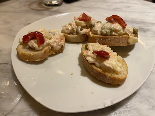 Lovely host staff, lovely vibe, easy to start a conversation with other people while standing by the long Spanish style bar counter or sitting at a small table.