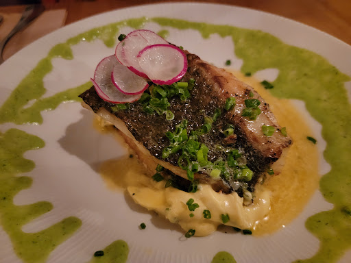 This was our best restaurant experience in Madrid. Great atmosphere, good food, good service. The Sea Bass was phenomenal, both in presentation and taste. Highly recommend that dish. Tacos were meh, but I live in Chicago and we have our share of taquerias, so high bar to meet. Girlfriend thought the taco meat was a bit tough. I thought it was normal for that type of meat and cooking style, but didn't find them that flavorful. Like they just needed a LITTLE something more to make them pop (maybe further marinade the meat to add flavor and soften it). Size of Tacos was good though and they looked nice. They weren't bad by any means, we're just spoiled by what we have back home I think. Would've enjoyed more guacamole with it, but I can never have enough guac, stuff is too delicious.