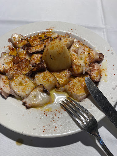 Read moreThis place is nice, bright, and cheerful. Service is ok, but the staff that was helping our party of 3 was young and didn't have too much experience. We asked for a table for 3. Two of us showed up on time and we kept a seat for the late one. But, another server took the chair about 10min after we were seated without asking us about it. We got another chair about 2min later. Food is ok, but definitely has room for improvement. All 3 of us agreed. Just a neutral or bland taste for the octopus platter and the steak. The croquettes de jamon were ok but I have had better, for sure. Double-size beer here is standard size almost everywhere else. We averaged €30ea and left...