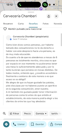 -Da igual las consumiciones que me tome. Mi dinero vale lo mismo tanto si me tomo 1 como si me tomo 5. Viendo la respuesta que habéis dado está claro que sólo os interesa si la gente se toma rondas de 10 consumiciones. Igual si trataseis mejor a los clientes la gente se tomaría más de una ronda y os tendría en más estima pero, si además de no poner tapa en la segunda ronda sois bordes pues normal que os pongan críticas negativas.