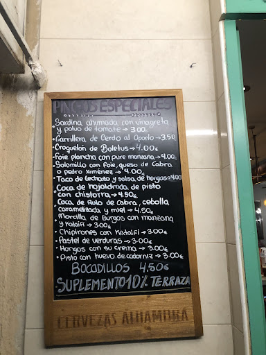 Read moreWe have visited twice during our stay in Madrid. The folks here do not speak English but the Tapas is excellent and isn't that just what a foodie wants. Just ask for the English menu and point at whatever interests you. We tried Elvers (baby eels) with garlic aioli on toast as well as Caramelised onions with goats cheese topped with caramelised Muscovy sugar. Both were excellent. We enjoyed having the local rather than the tourist experience here.. my wife and I would gladly return. The shop is a little bit squeezy so wheelchair access may be difficult unless you can get access to a front...
