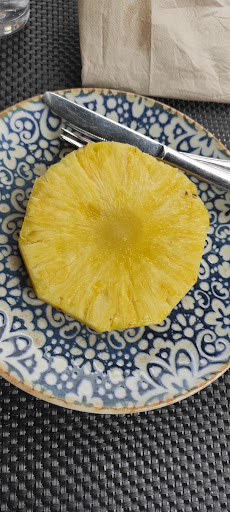 Tras una correcta y amable recepción, me asignan una mesa en un rincón agradable, con vistas a la calle, y empiezo a leer la carta y el menú del día (ambos con una presentación aceptable y bien organizados los distintos platos que ofrecían). Una vez decidido lo que iba a pedir, no tuve que esperar mucho para que me atendieran y me tomaron nota. Escuché, a otros clientes cercanos, quejarse de que no fuese posible pedir algo que habían elegido en la carta. Yo tuve suerte en ese sentido, ya que mi elección era muy básica y facilona (en teoría). En unos cinco minutos, me sirvieron lo elegido, y no me gustó lo que estaba viendo: Se trataba del muy socorrido plato consistente en un filete de pechuga de pollo con patatas fritas y un huevo frito. Pues bien, las patatas fritas estaban pringosas y blandujas (quizás ellos las hagan así de forma consciente y no sea un fallo, pero a mí me gustan crujientes (no duras) y no encharcadas en aceite (para gustos..., los colores). El huevo frito podría pasar como aceptable, pero el tranco (mazacote por gordo y mal trazado) de filete de pechuga no tenía un pase: Poco hecho, con zonas sonrosadas y algunos puntos rojos ( y no era tinta, ni pimiento, ni tomate, ni fresa, ni algo distinto a sangre). Al ir cortando el mazacote, encontraba una especie de "telas" elásticas que, al morderlas, los dientes rebotan (quien haya visto la pieza de carne cruda de pollo recién venida de la carnicería, habrá visto esa especie de telas blancas que hay entre la carne, antes de escoger y filetear bien la pieza, quedándose sólo con lo más magro, y, a ser posible, bien machacado cada filete, destruyendo lo que no es carne). En fin..., seré yo muy raro, escogido y poco tragaldabas para comer, pero meterse eso en la boca no fue muy agradable, y allí dejé buena parte de la pechuga. Por lo demás, estuvo bien el restaurante, pero, si vuelvo,...