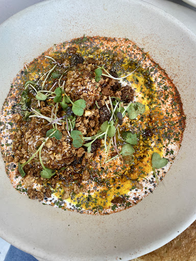 Pedimos dos Special Brunch (16,90€ / cada uno) que incluye un principal, un postre y una bebida. Esta fue nuestra elección: -Huevos turcos: 2 huevos camperos cocinados a baja temperatura sobre mezcla de yogur con menta y un toquecito de ajo. Salsa holandesa, granola casera, aceite de albahaca, semillas de chía, un toque picante. Acompañado de pan brioche. Un plato original y muy sabroso. Lo recomendamos. -Brioche pollo bun bun: Pan brioche semidulce relleno de pollo a baja temperatura, cebolla roja, pimiento amarillo, almendras, espinacas y salsa chipotle, un huevo campero a baja temperatura y patatas campestres. Más contundente que el anterior, también nos gustó mucho. -Bizcocho de chocolate: De aspecto denso, pero esponjoso en boca. Tiene toques de sabor de plátano y también sacia mucho. -Mousse de chocolate: Muy cremoso y con un sabor intenso a cacao. Muy bueno. -Café cappuccino XL (+1€): Buen tamaño de café y nada amargo. -Limonada casera: Hay dos sabores, piña o maracuyá. Muy refrescante y con un sabor suave.