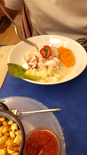 •Le doy un 5/10 en comida: el ceviche parecía que el limón no era natural si no de bote aunque estaba muy bien el pescado panga(?), el arroz chaufa demasiado aceite y arroz pálido le faltaba salsa de soja o sillaou y apenas se notaba la cebolla china...No obstante el aji de gallina y la causa estaba bastante bien en su punto de sal pero el Ají de gallina tenía un color un poco más oscuro de lo habitual demasiado aji panca supongo y por último el postre que debe ser lo más destacado en una comida pues mi arroz con leche parecía más sopa de arroz senti ausente las pasas y el pay de manzana le doy un 9 muy bueno!! •Le doy un 7/10 en servicio : Los camareros son simpáticos aunque alguno un poco cortante pero lo demás aceptable ,me gusta que me hayan cambiado el cubierto ya que otros restaurantes peruanos no lo habían hecho! Es un gran punto y aunque pedimos muchas cosas nos atendieron con amabilidad aunque admitimos que queríamos saber hasta dónde llegaba su paciencia y nos sorprendieron gratamente!! •Le doy un 9/10 al local : El sitio está muy bien situado y es muy acogedor con música típica de Perú criolla muy buena aunque algo de variedad como salsa no vendría mal quizás hay pero el momento que estuve no hubo ese tipo de música! Me gusta que las servilletas sean recicladas y también el salón de abajo muy bueno! Tambien donde está situado los postres está bastante bien colocado nada más que entras te quedas con ganas de probarlos!Mi puntuación sería de 10/10 pero los baños está bien decorados si pero que estén los 2 en el mismo cuarto y separados por dentro me dio un poco de cosa la verdad pero todo correcto.. Cuando mejoren esos puntos de comida le podrá dar 4 o 5...