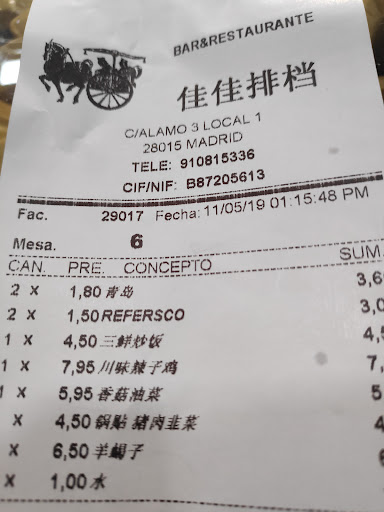 The worst Chinese restaurant you can go to in Madrid, read the reviews carefully. I did not read before and had a very unpleasant experience. I ordered a dish whose picture was shown on the door and they served me something that did not look like anything, when I made the claim to the woman who attended she took the dish away and said there was no dish, she threw us out of the restaurant without us having disrespected her, I asked for the complaint form and they did not want to give it to me. I called the police because the mistreatment was unbelievable, that woman is really explosive, on top of that she accused me of not having paid her for a dish. But, if I ordered two dishes and she only wanted to serve me one, I didn't even touch it (I didn't eat it) and she didn't let me order another dish, what is the idea that I am going to pay for a dish that I am not going to eat and if only I am going to eat and they don't let the other person at my table order as well? That's why he accused me of not wanting to pay for the dish. They really don't know how to treat the public, and now I realize that I should have read before. //// El peor restaurante chino al que puedes ir en Madrid, lean las críticas que por algo lo ponen!! Yo no leí antes y tuve una experiencia muy desagradable. Pedí un plato cuya foto aparecía en la puerta y me sirvieron algo que no se parecía a nada, cuando hice la reclamación a la mujer que atendía me quitó el plato y me dijo que no había plato, nos echó del restaurante sin que le hubiéramos faltado al respeto, pedí la hoja de reclamaciones y no me la quisieron dar. Llamé a la policía porque el maltrato era increíble, esa mujer es realmente explosiva, encima me acusó de no haberle pagado un plato. Pero, si yo pedí dos platos y ella sólo me quiso servir uno, ni siquiera lo toqué (no me lo comí) y no me dejó pedir otro plato, ¿qué es eso de que voy a pagar por un plato que no me voy a comer y si sólo me lo voy a comer yo y no dejan que la otra persona de mi mesa pida también? Por eso me acusó de no querer pagar el plato. Realmente no saben tratar al público, y ahora me doy cuenta de que debería haber...