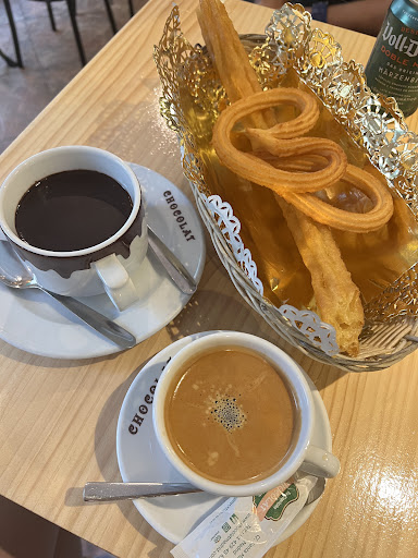 Read moreCute but small shop serving up hot chocolate and churros/porras. For 4.60 euros, you get the set of either just porras or churros, or a combination of both alongside a cup of hot chocolate to dip. We went around 3pm on a Wednesday and got a table immediately as it wasn’t full. I overheard another table mentioning that it’s usually packed around 12pm and 5pm as that’s when porras and churros are freshly fried.