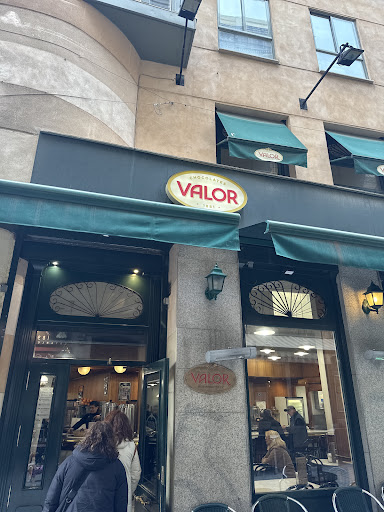 Read moreOn many people's to do list visiting Spain is authentic churros con taza, churros with chocolate. Valor is a well established brand, you can buy it in the supermarket to bring home. We visited on a beautiful warm summer evening and sat outside enjoying the vista. It wasn't difficult to get a table and we didn't have any difficulty getting service. We got 3 drinks to share between 5 of us and that was probably too much, they are very filling. Go for more churros less taza is my suggestion. The hot chocolate is less sweet than the British palate may be used to so bear that in mind particularly visiting with kids who may find it a bit strong. Churros do not contain eggs and if you want allergy information I was able to find this on valor website before our visit in an easily accessible pdf. This meant no worries with language barrier in the cafe. We really enjoyed our experience and this cafe was nicely located within the shopping district of Madrid. Great...