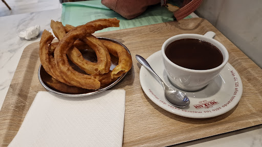 Read moreMi sitio de churros favoritos y de confianza en Madrid. Voy todos los domingos y es estupendo, tanto los churros de papa como de rueda (porras) muy buenos y como debe ser un buen churro. El chocolate muy muy bueno también, espeso y riquisimo sin ser muy empalagoso. Todos allí son geniales y siempre que voy ya me tienen preparada mi bolsita con porras y mi chocolate para llevar así que no me toma más de 3 min. Cuando voy con amigos es genial el ambiente es muy bueno y cuando hace frío se está muy calentito, además no huele a aceite como otro lugares. En resumen: Bueno, bonito y barato. ¡Absolutamente...