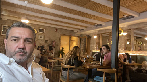 Read moreFor starters I asked if they had WiFi and they said no. So when I connected the iPhone to the "Meson Cinco Jotas" WiFi open network and start downloading pictures I told the same guy that told me there was no WiFi. You might think he apologized or something of the sort, nope, still saying they had no WiFi, I assumed he wasn't very bright and went on with my lunch. The prices have gone up noticeably since last time I visited, but now they make you pay 1.95€ for a piece of bread and put way less food on a weird shaped plate. I ordered the typical eggs with fries which cost me 15.50€ and honestly I did not see why. They are trying to charge more giving less in return because they have changed the menu to a stiff laminated fancy one,...
