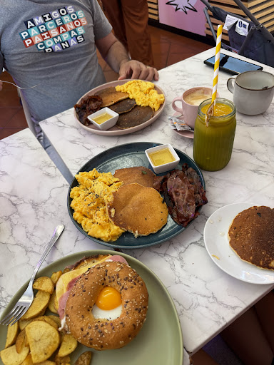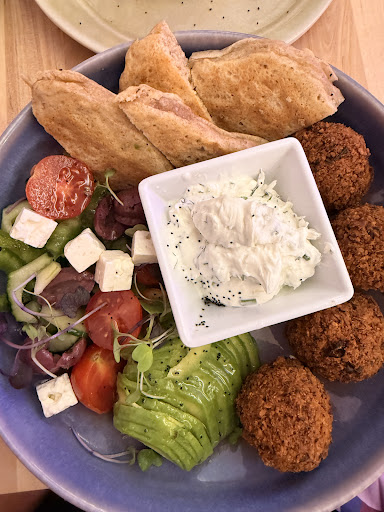 Read moreWow. Was craving something healthy-ish for brunch after eating lots of fried food and tapas. This place is spectacular. Every granular detail is well focused and is a balance between healthy and comforting. I had the souvlaki falafel bowl with avocado. The yogurt had fresh herbs, salad was super fresh. The homemade bread and crispy crunchy falafel were to die for. My partner had the Arepitas and a side of scrambled eggs. The side of eggs were fluffy and fresh. Fresh juices, awesome coffee. This was surprisingly one of the best places we ate for any meal on this trip, including Japan. Kudos to the talented team here for making an unexpected outrageously awesome...