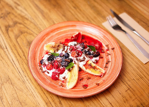 Read moreI'd go back, for sure. They have standard breakfast fare and it all looked good: pancakes, bowls, and toast with an assortment of toppings. Pretty much everything has an egg in/on/around it and they have a few veggie/vegan options with vegan egg scrambles. The presentation of the food is quite eye-catching, so I was afraid the fruit pancakes would be a sugar-bomb, but the compote was a good mix of tart and fruity. The menu was in Spanish and I'm not certain there was an English option, but I heard our waiter speak English to other tables, so between Google and this fella, you're...